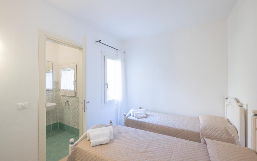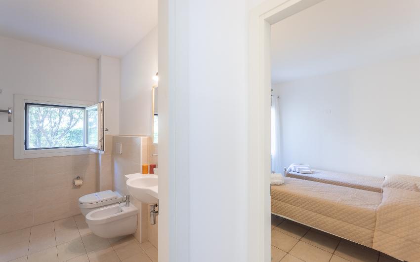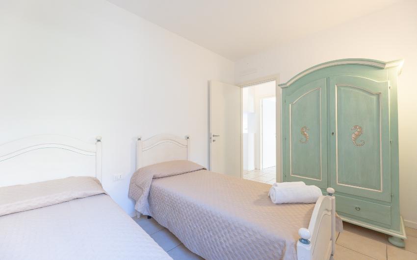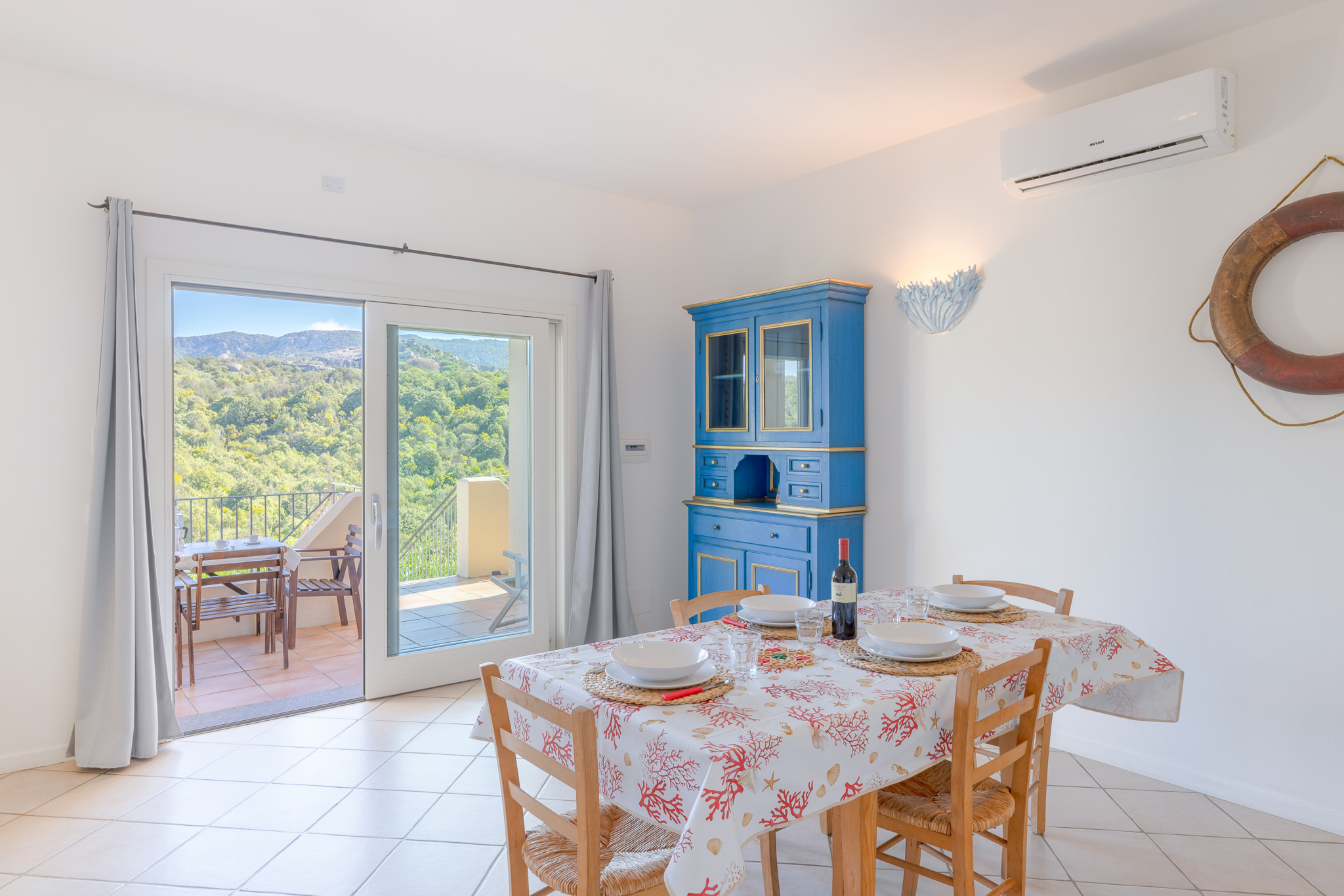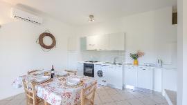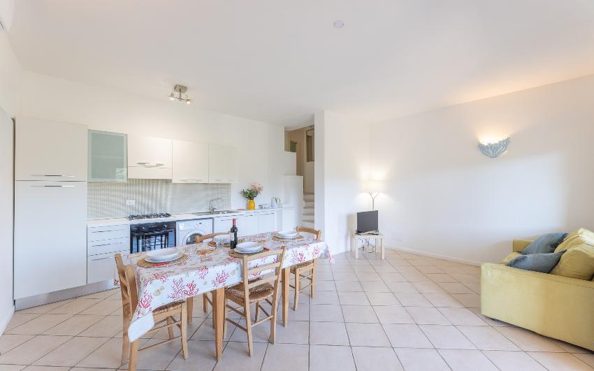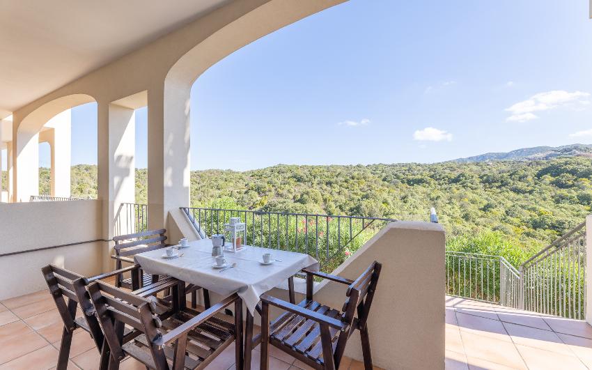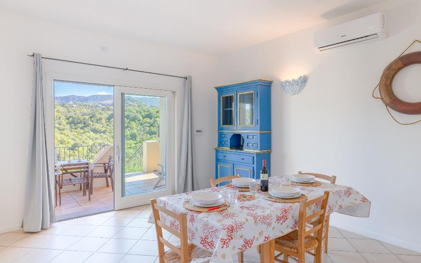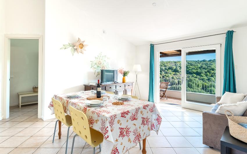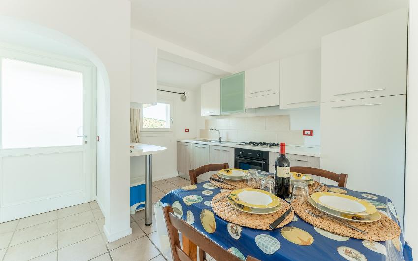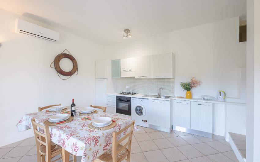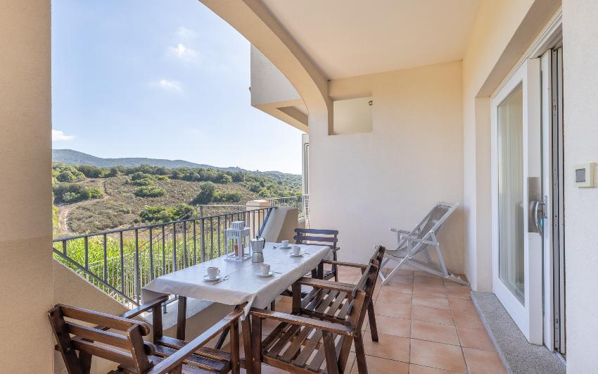 Die geräumigen Wohnungen sind mit jeglichem Komfort ausgestattet, funktionell eingerichtet und mit feinen Oberflächen und dem sardischen Stil versehen. Sie verfügen über eine Klimaanlage, eine Waschmaschine, eine voll ausgestattete Küchenzeile und jede Wohnung hat eine möblierte Terrasse (im Erdgeschoss) oder einen Balkon (in den oberen Etagen), von dem aus man den Blick auf die mediterrane Macchia genießen kann.