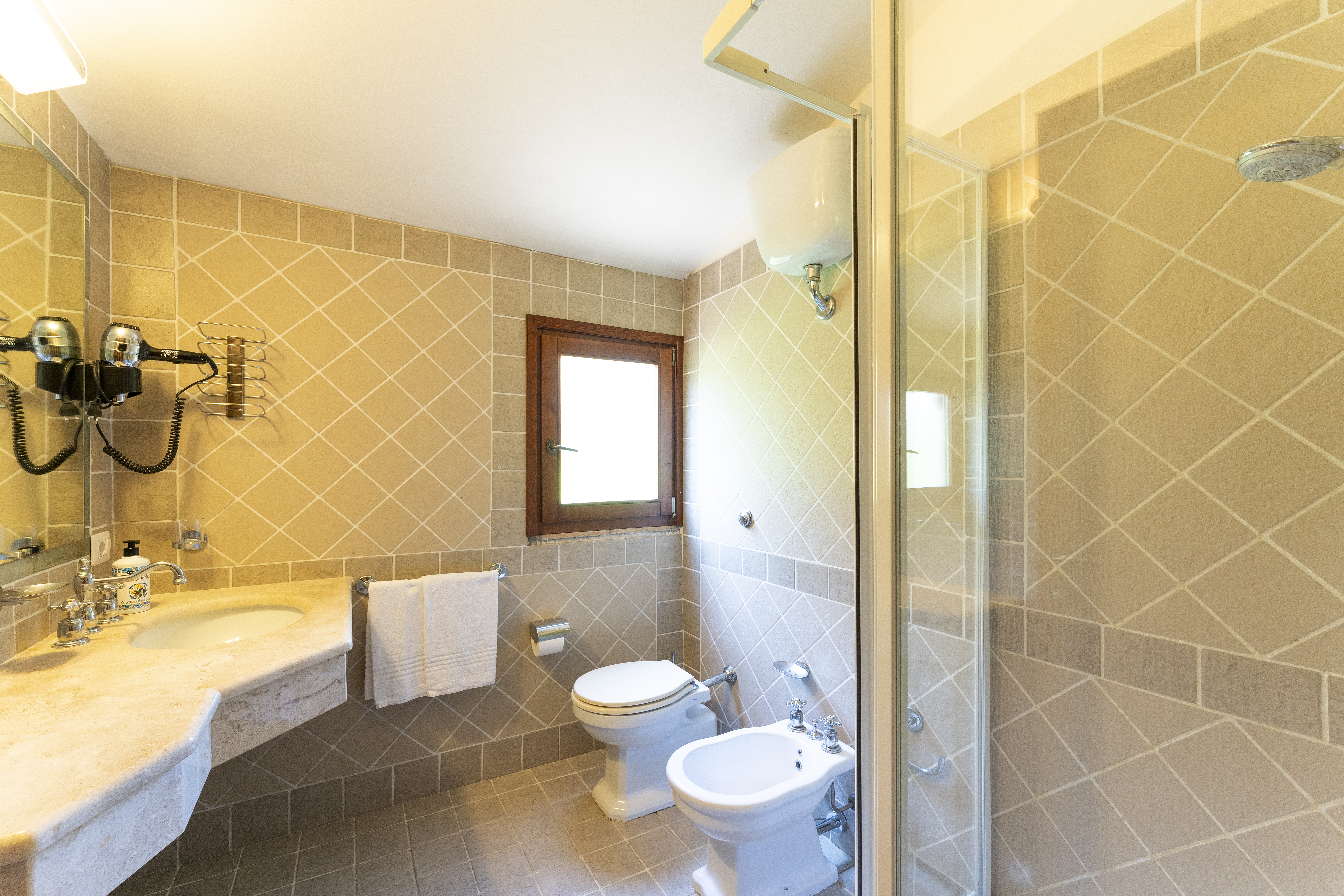 Podrás relajarte en nuestra piscina de agua salada con una amplia zona para tomar el sol y adentrarte en un parque rodeado de un espeso pinar, más allá del cual se encuentra la playa de Cala Brianza, a solo 250 metros del hotel.