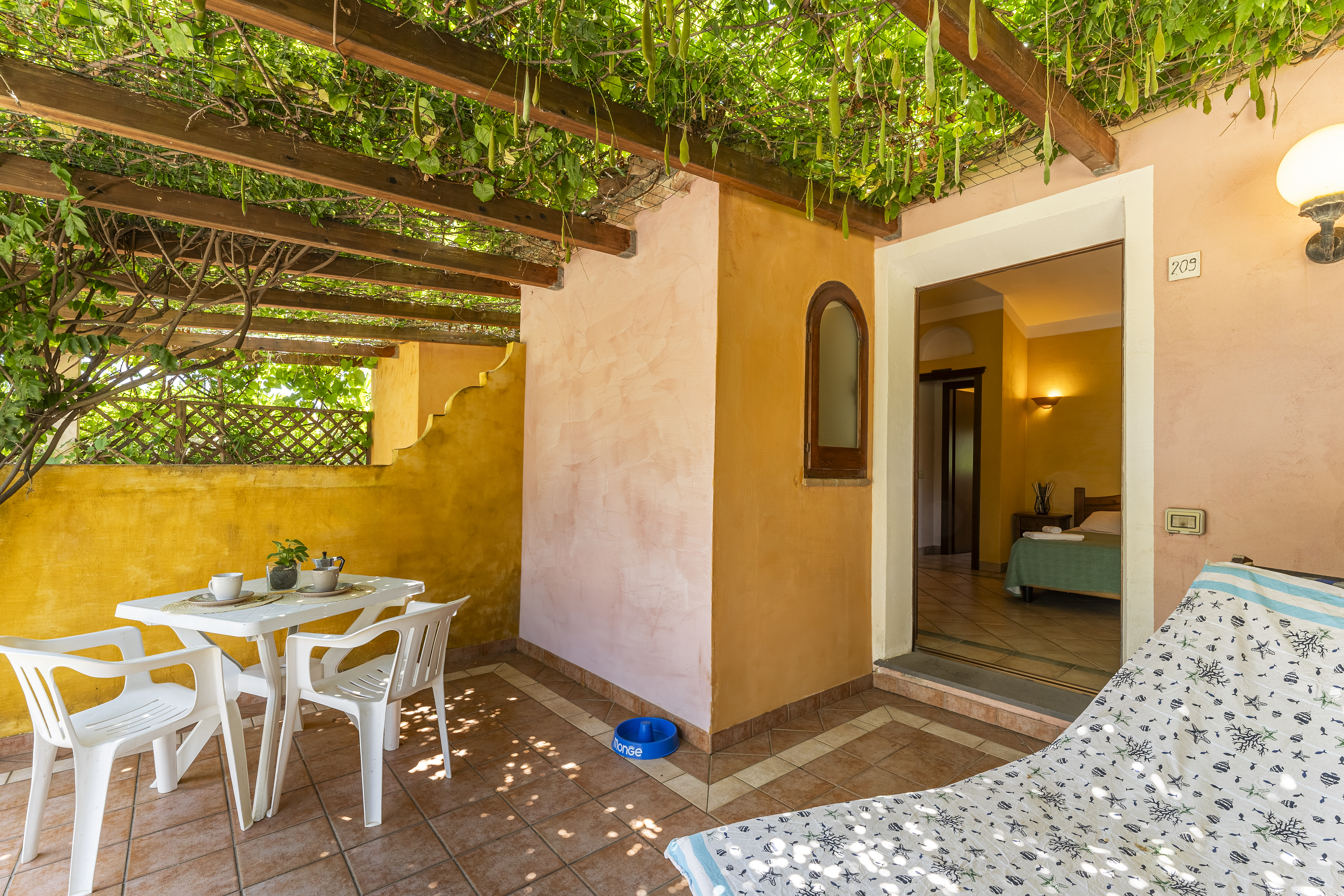 Sumérjase en la tranquilidad de nuestra Residencia Baia delle Palme, un exclusivo refugio situado dentro de un verde parque, rodeado de un espeso pinar.