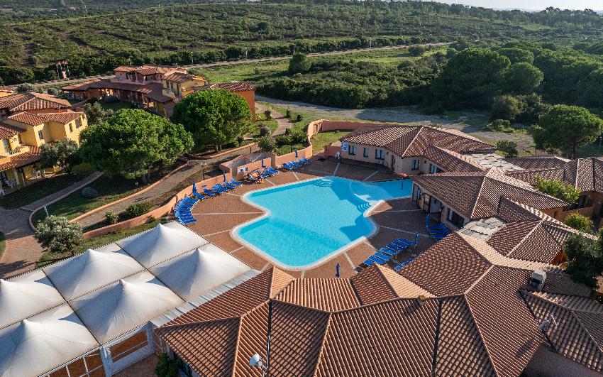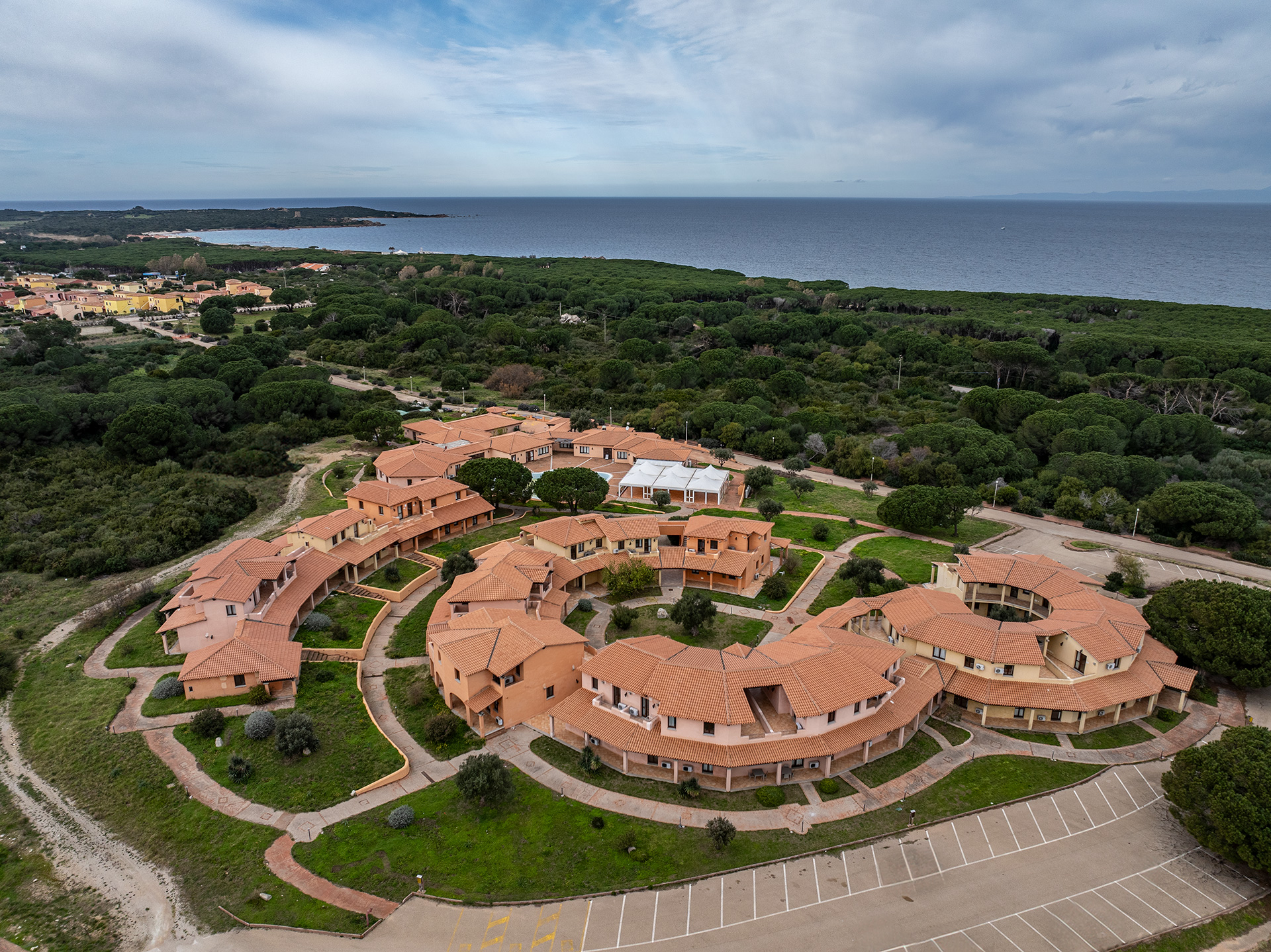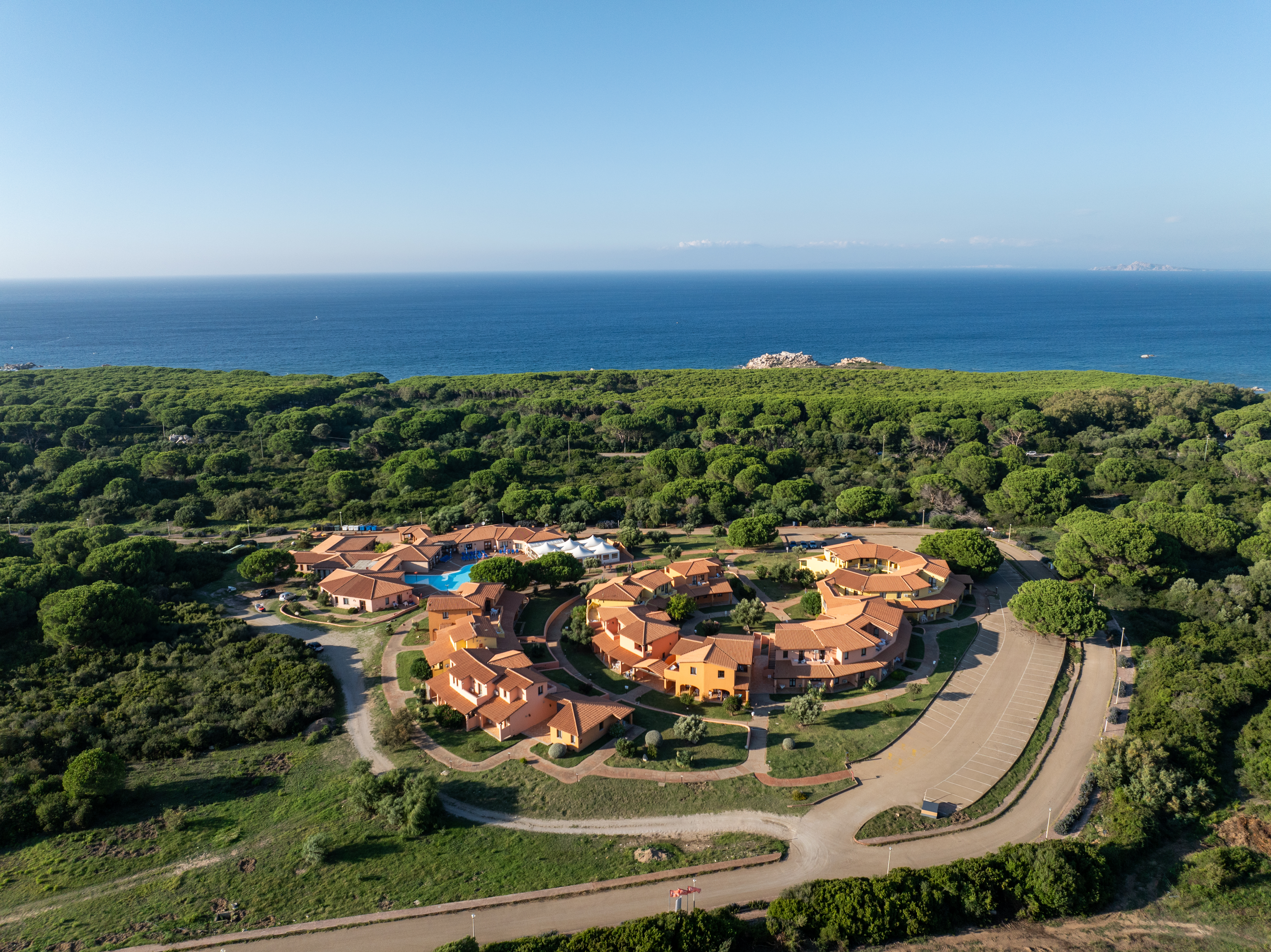 Enmarcada por un hermoso pinar, la residencia, diseñada siguiendo el estilo arquitectónico de la región de Gallura, es ideal para alojarse en familia, con amigos o en pareja.