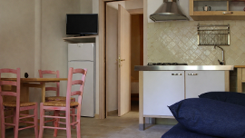 (40/45 mq) soggiorno con angolo cottura e divano letto matrimoniale, una camera con letto matrimoniale (separabile), aria condizionata (2 split), bagno con doccia