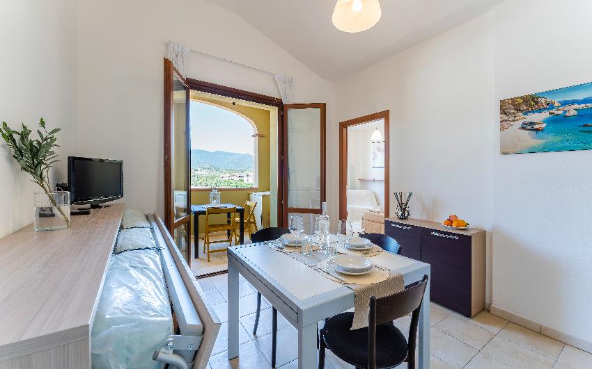 (33 mq): soggiorno con letto a parete, angolo cottura attrezzato, lavastoviglie, camera matrimoniale (letti separabili), aria condizionata (1 split), e bagno con doccia.