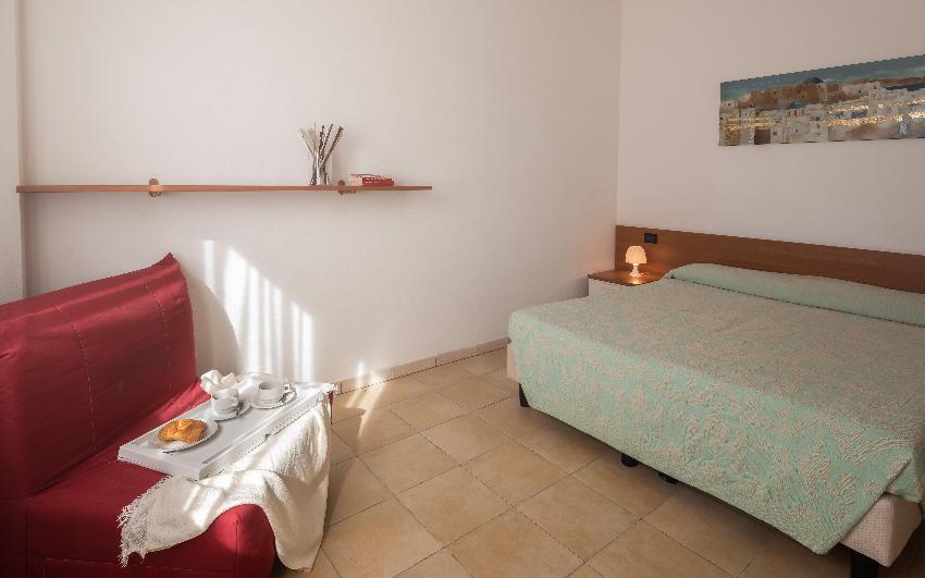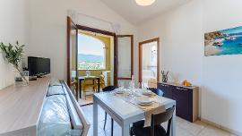 (50 mq): soggiorno con letto a parete, angolo cottura attrezzato, lavastoviglie, camera matrimoniale (letti separabili), cameretta con due letti singoli, aria condizionata (2 split), bagno con doccia.